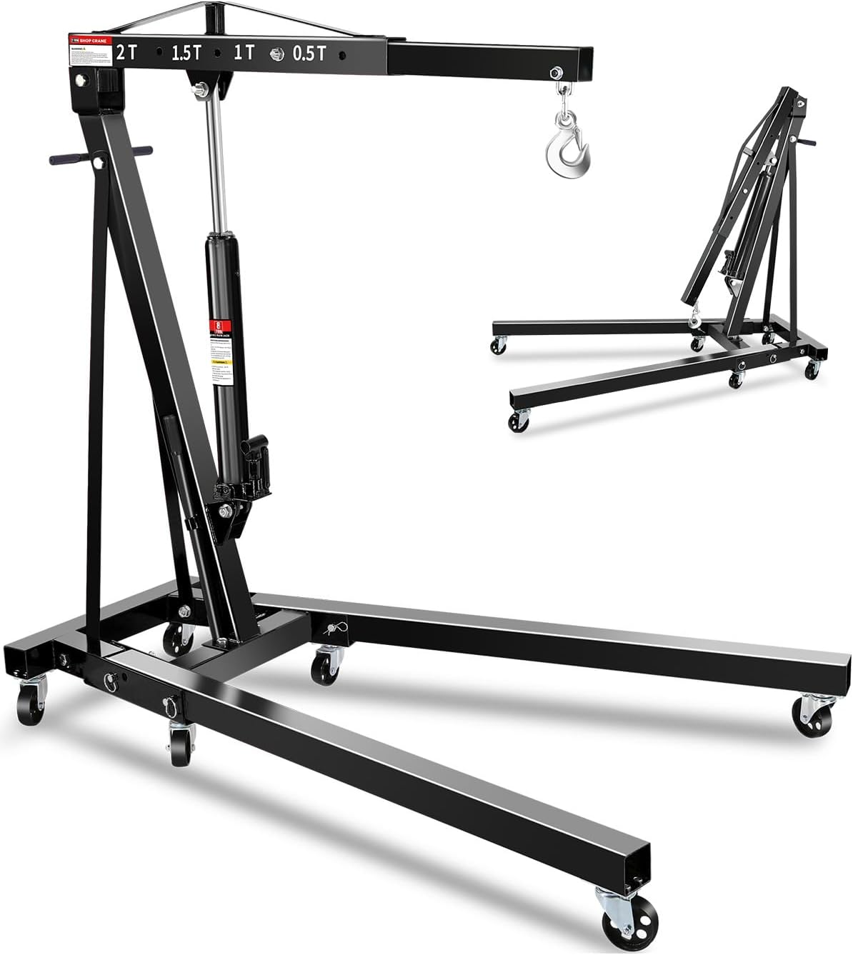 - 【High Lifting Capacity & Adjustable】 ✔ 2-Ton (4400 lbs) Heavy-Duty Lift – With 4 adjustable boom positions (0.5T/1T/1.5T/2T), this hydraulic engine hoist easily handles gas engines, small diesel engines, and heavy machinery, perfect for truck/SUV repair and workshop use.